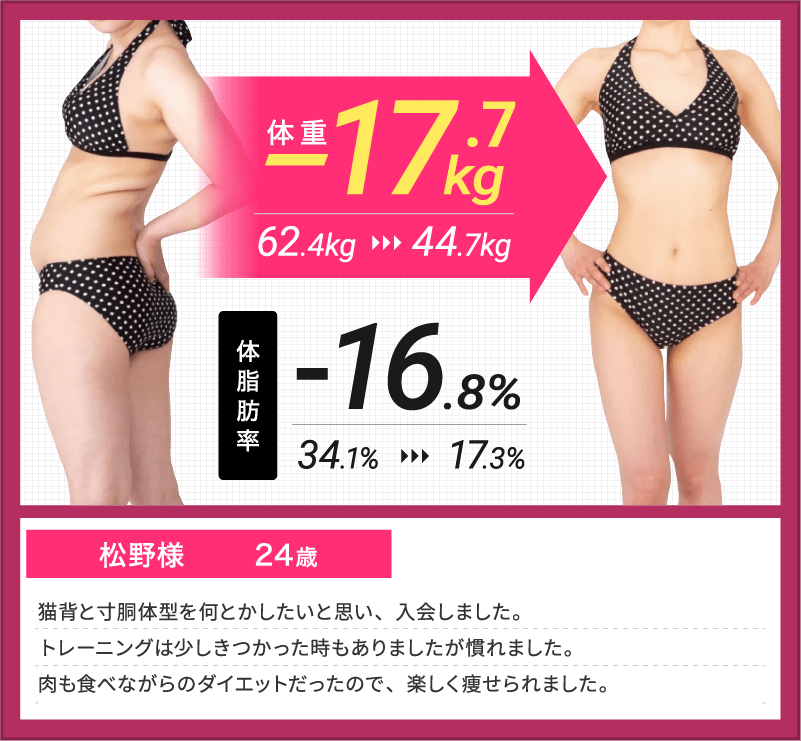 今まで太っていたことで人に会うのが嫌でしたがメンタル面をしっかりサポートしてくれたおかげで医師も強なり痩せてからはおしゃれが楽しくなり人生が変わりました。