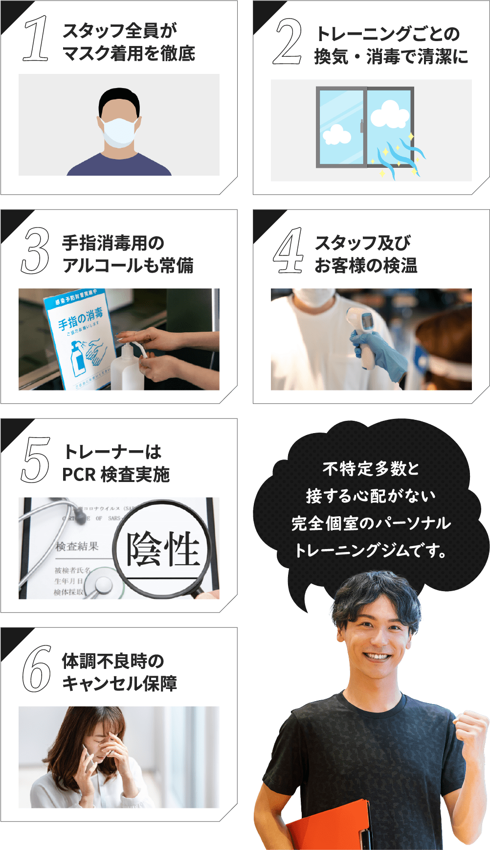 その日の体調を考慮しながらメニューも変えてくれるのでトレーニングに行くのが楽しいです。