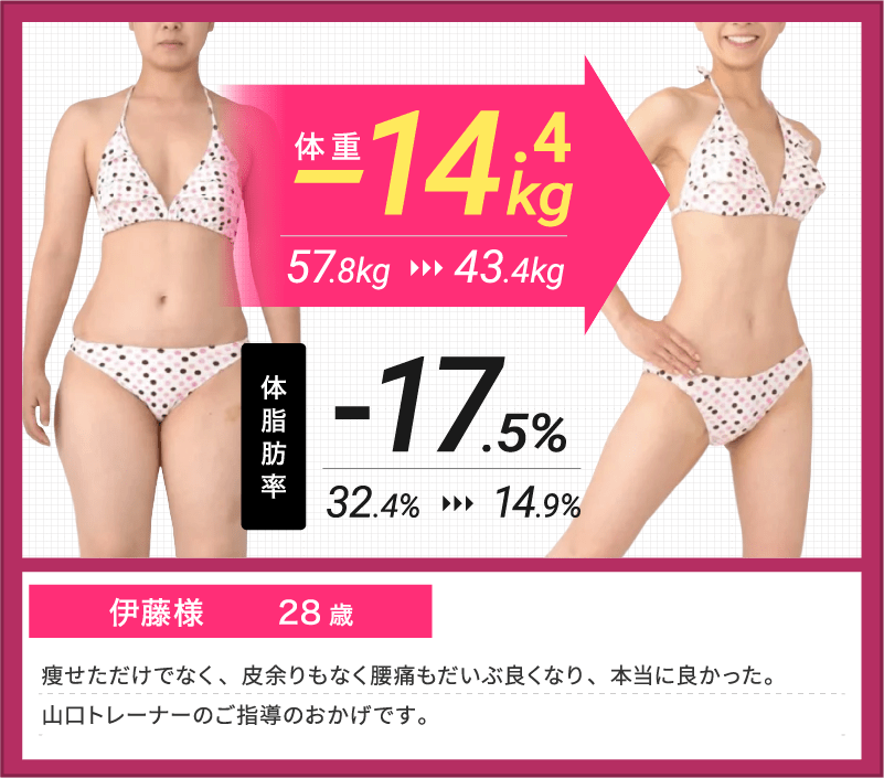 パーソナルなので細かく指導してくれるので分かりやすく効果も出ました。