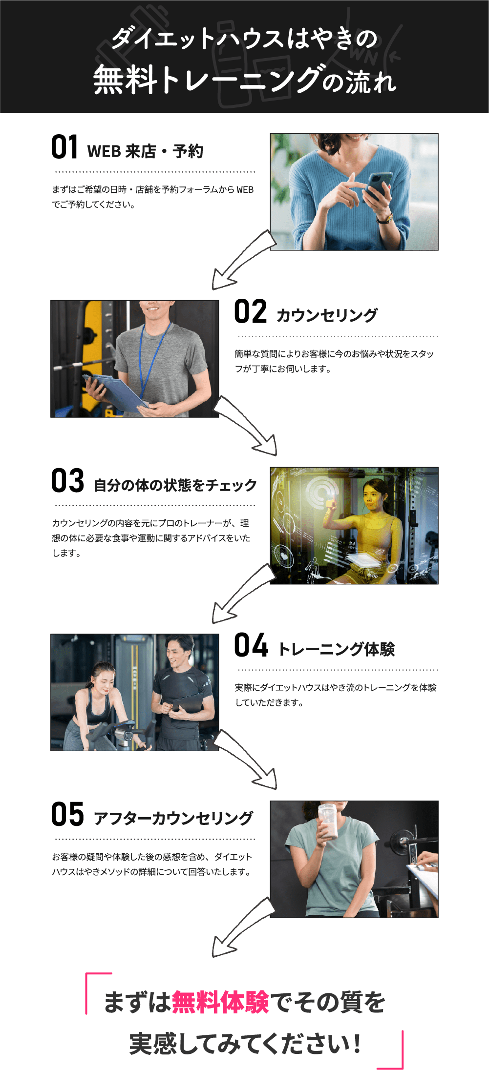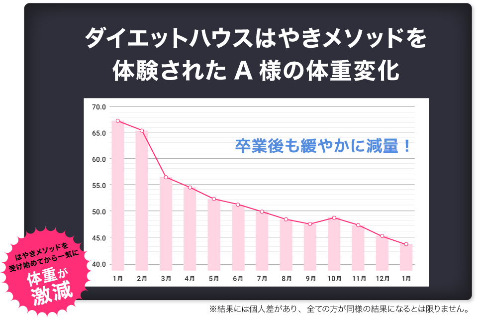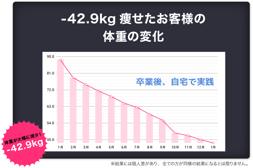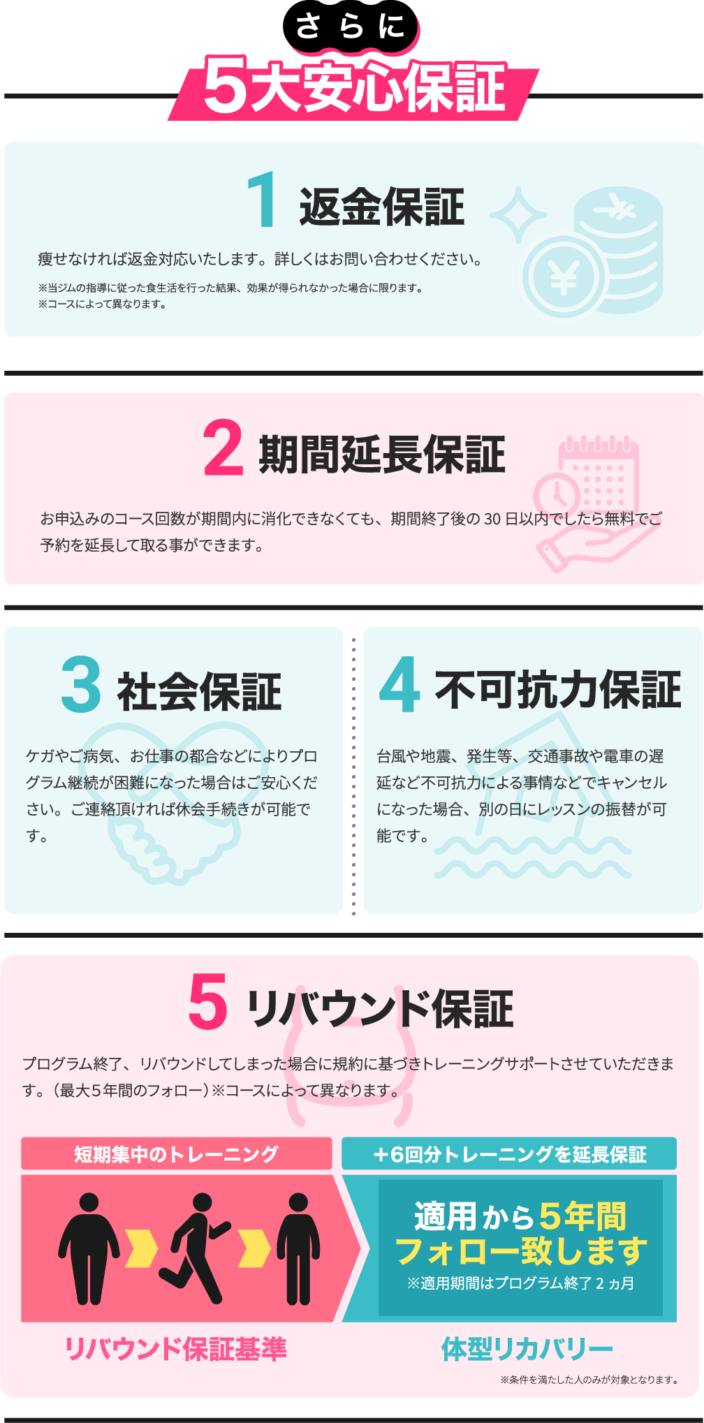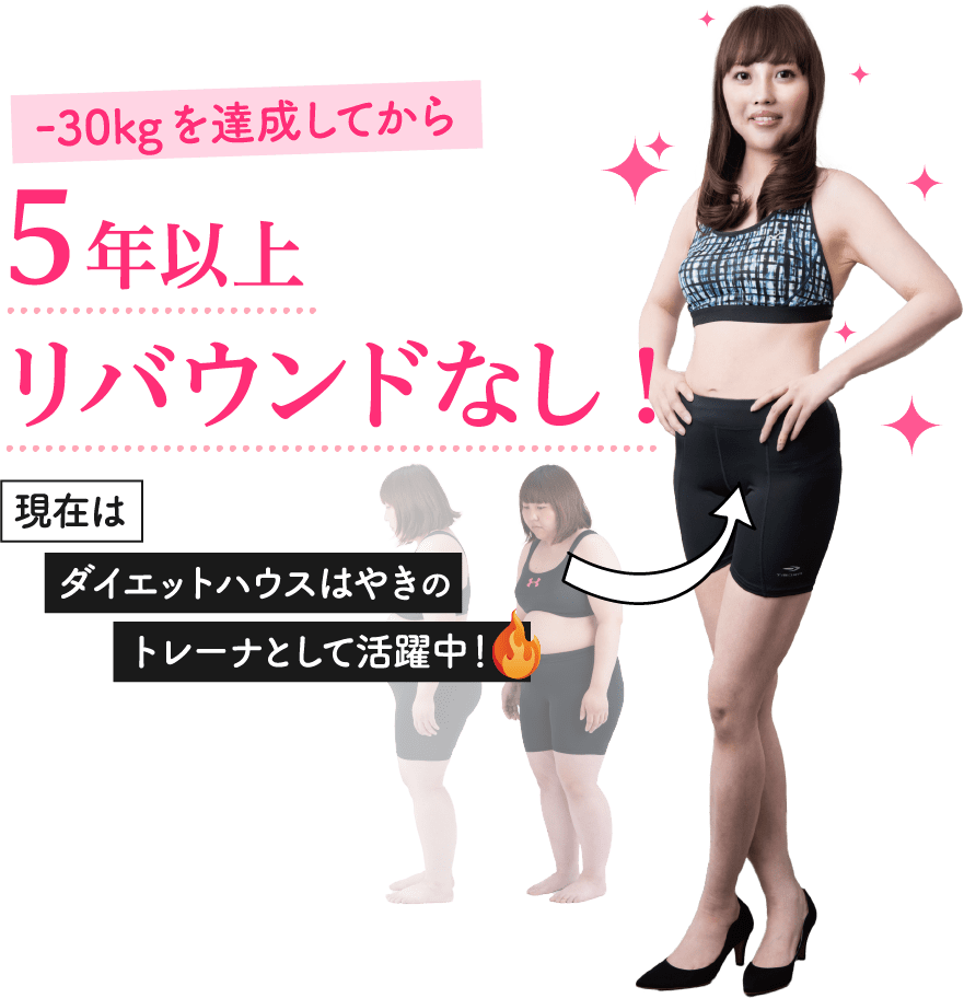 プログラム終了後も5年間のリバウンド保証で、ご相談いただけます!せっかくの努力が無駄になってしまわないようサポートをしていきます!